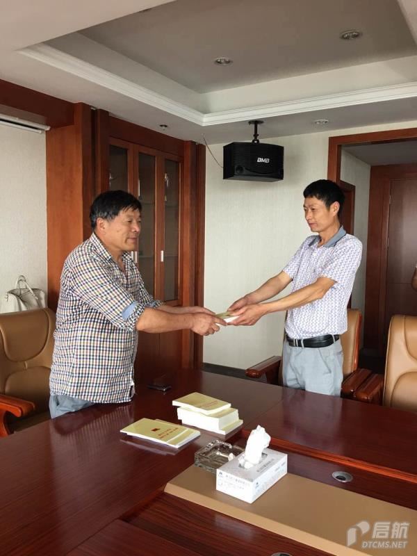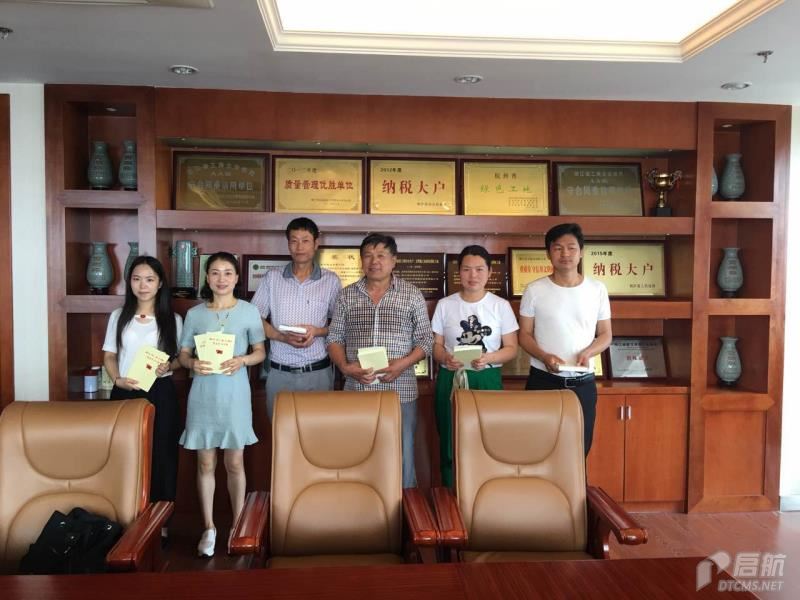 圖為公司黨支部書記余長生給黨員派發(fā)《讀本》和《手冊》