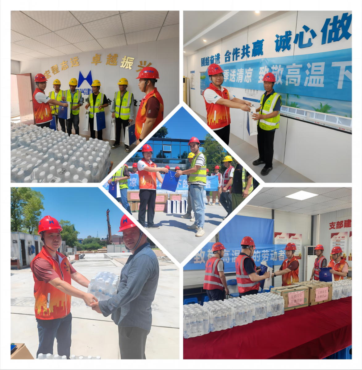 為切實(shí)保障建筑工地施工人員勞動(dòng)安全與健康,7月5日,公司工程部總監(jiān)葉盛、副總監(jiān)李敏帶隊(duì),深入工地開(kāi)展“宏興建設(shè)2024年度夏季送清涼”慰問(wèn)活動(dòng),公司精心準(zhǔn)備了防暑藥品和礦泉水等防暑物資,向辛勤工作在一線的施工人員表達(dá)敬意與感謝,傳遞公司對(duì)他們的關(guān)心與關(guān)懷。