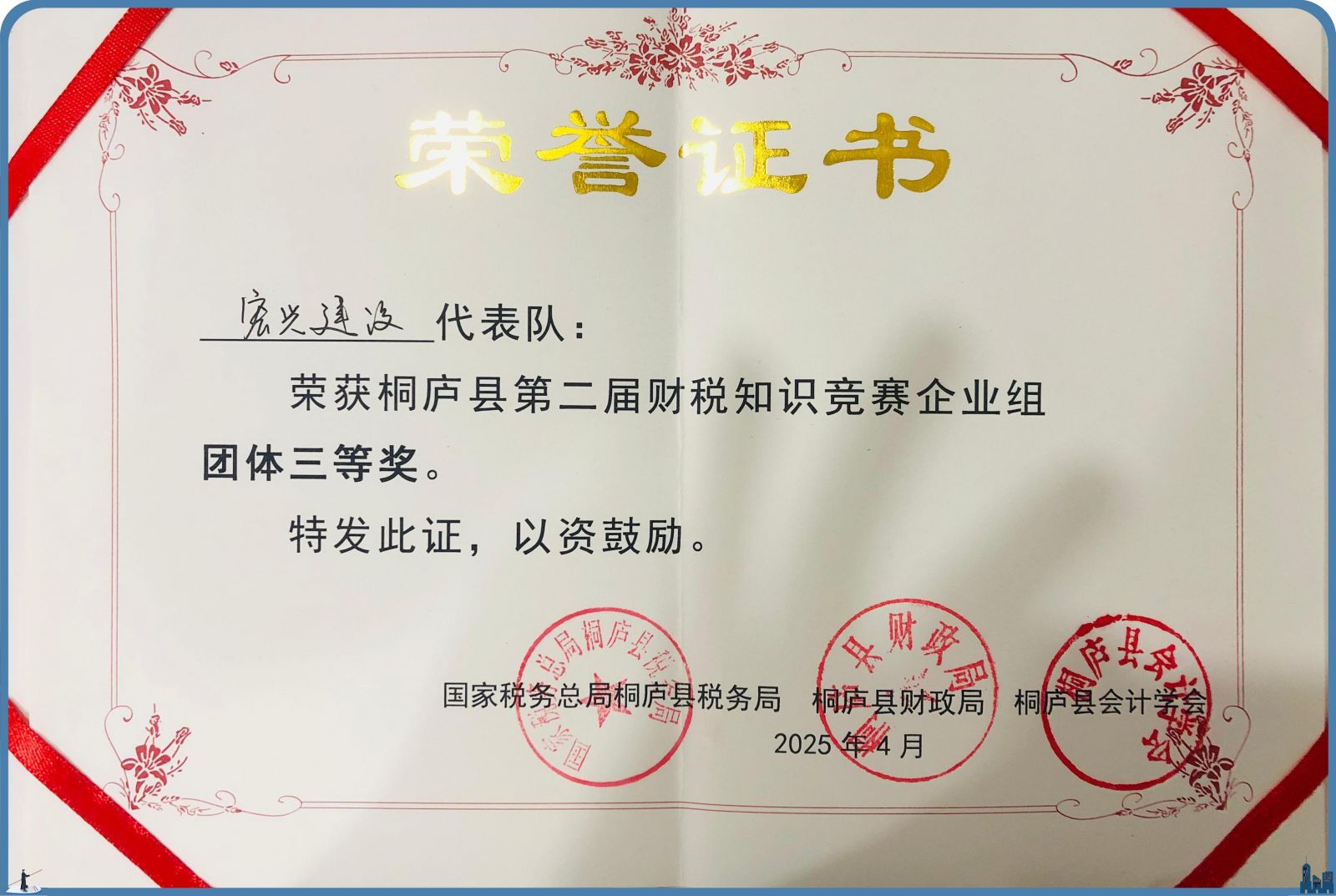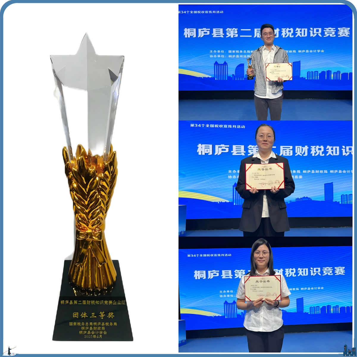 我公司由財務(wù)總監(jiān)領(lǐng)銜的5人精英團(tuán)隊?wèi){借扎實的專業(yè)功底與默契的協(xié)作精神脫穎而出。繼去年勇奪“團(tuán)體第二名”后,今年再創(chuàng)佳績:斬獲“團(tuán)體三等獎”,團(tuán)隊成員毛衛(wèi)麗榮獲個人一等獎,池秋俠榮獲個人二等獎,展現(xiàn)了團(tuán)隊在財稅領(lǐng)域的深厚積累與持續(xù)突破。